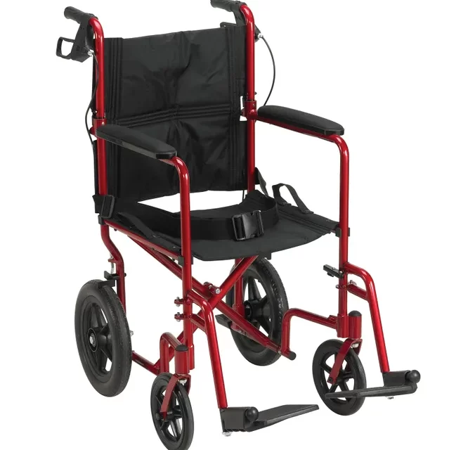 This type of lightweight wheelchair is often referred to as a “transfer chair” and is typically used for shorter trips. Since it’s geared towards storability and portability, it features four smaller wheels and dispenses with the larger, rear-mounted wheels that characterize standard wheelchairs. Its construction ensures that it’s always foldable and portable, but does so at the expense of self-propulsion. Instead, a transport chair is built so that a caregiver can easily push the user from point A to B.